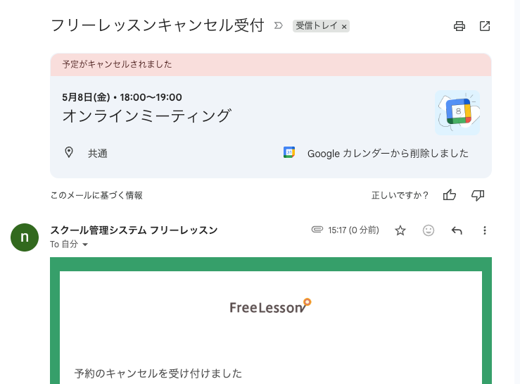 こちらご要望を受けまして、キャンセル受付メールを受信した際にスケジュールを削除するために使用変更を行いました