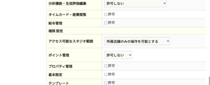 スタッフの所属スタジオ内のみに操作を限定するか、すべてのスタジオの操作が可能とするかという権限の分離でしたが、このたびスタジオエリア内のみに限定をする権限が追加となりました