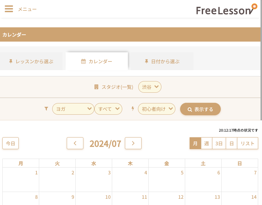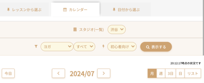 カレンダーに表示するレッスンを レッスンカテゴリー(2階層カテゴリーを利用の場合は2階層となります) レッスン種別 によって絞り込みができるようになりました