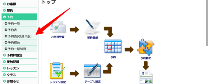日常的に利用する予約表の表示が遅いと感じられる場合に表示速度を改善したバージョンを用意しました 表示内容が同じになるようにご用意しておりますが、予約表内はカスタムが適用されているケースが多いため動作の確認も含めてまずはβリリースとさせていただきます 従来のバージョンの予約表と並行してご利用が可能です メニューの予約表の下にリンクを追加しましたが、基本設定の変更権限があるスタッフIDのみに表示されるようになっております