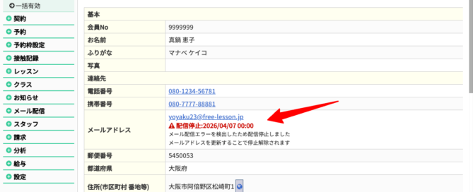メールの配信エラーを検知した場合に、管理画面とお客様マイページに表示を追加しました メールが届いていないことを把握できるようになり、メールアドレスの修正を促してより確実にメールを届けるために役立ちます お客様マイページには以下のように見えます お客様情報を更新することで、配信エラーの記録がクリアされます